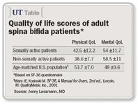 Atlanta-Sexual activity is lower and more disturbed in adult patients with spina bifida than it is in the general population, according to a recent study by researchers from the Children's Hospital of Philadelphia. Interestingly, however, this diminished sexual activity does not appear to significantly affect spina bifida patients' quality of life, researchers said at the 2006 American Association of Pediatrics Section on Urology annual meeting here.
