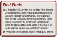 CMS may grant, upon request, a repayment schedule of at least 6 months if repaying within 30 days would constitute a hardship.