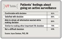 Active surveillance has long been accepted by urologists as an appropriate treatment for some men with localized low-risk prostate cancer, but patients are less enthusiastic about this approach. In fact, only 8% to 10% of men actually choose active surveillance, noted first author Joyce Davison, PhD, RN, assistant professor of urologic sciences at the University of British Columbia.