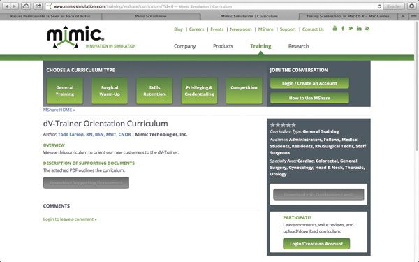 MShare provides an online forum for surgeons and hospital administrators worldwide to communicate and share curricula that have been validated by new research. A first-of-its-kind program for surgeons, it is now being used by a team of researchers that will help identify which training programs are working for robotic surgery, according to developer Mimic Technologies, Inc.
