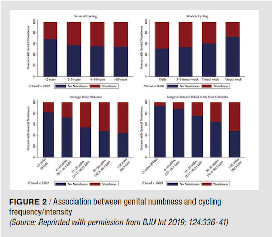 In our cohort, even though numbness was not associated with increased ED, it makes sense to avoid numbness when possible. For the hobbyist or more serious cyclist, getting your bike professionally fit ensures optimal ergonomics and helps minimize trauma. Riding a bike that fits well is likely the single most important step riders can take to protect themselves from genital numbness.