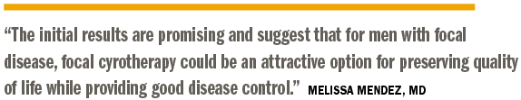 “So, while there is more work to be done, this report represents the largest study of cryotherapy outcomes to date. The initial results are promising and suggest that for men with focal disease, focal cryotherapy could be an attractive option for preserving quality of life while providing good disease control,” Dr. Mendez told Urology Times.