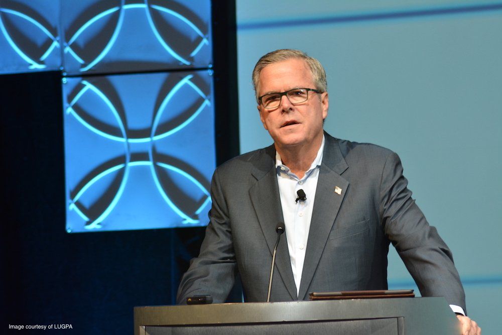 Jeb Bush touched on a range of issues in health care and politics and shared a few personal anecdotes about his famous family with LUGPA members at the association’s annual meeting in Chicago.