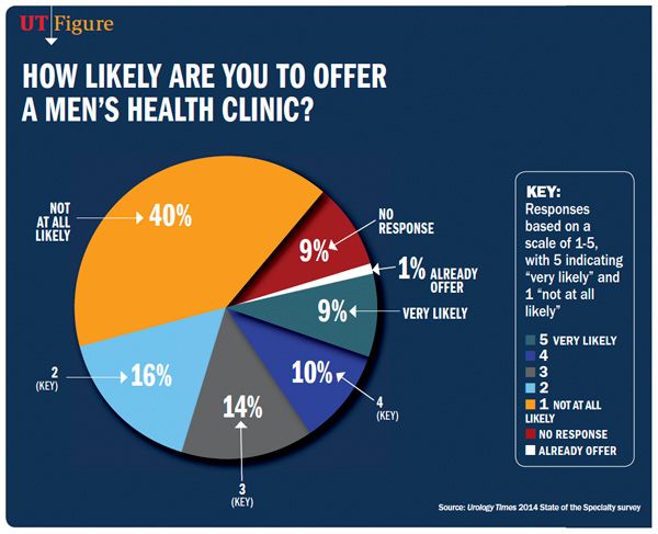 In fact, a single-question online poll conducted by Urology Times in September 2014 showed that 50% of urologists were considering broadening their practice to include a men’s health clinic and that 19% already have one.