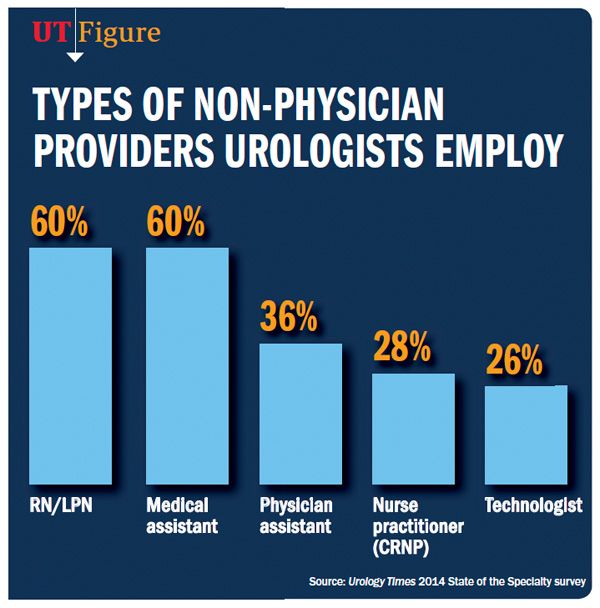 “I am not surprised that anticipated increases appear higher in institutional groups, but the expectations of private-practice urologists indicate almost half of them see increased usage in the next 5 years. Clearly, the larger practices have the financial wherewithal to support the non-physician provider in the 12- to 18-month time frame until they become fully productive professionals in specialty practices.”