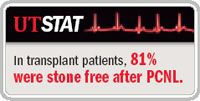 PCNL is also emerging as an appropriate procedure for the minority of kidney transplantation patients who develop stones. Urologic surgeons at the University of Alabama, Birmingham have used PCNL in renal allograft patients for 19 years, said chief urology resident Joseph Wyatt, MD, who worked on the study under the direction of John R. Burns, MD.
