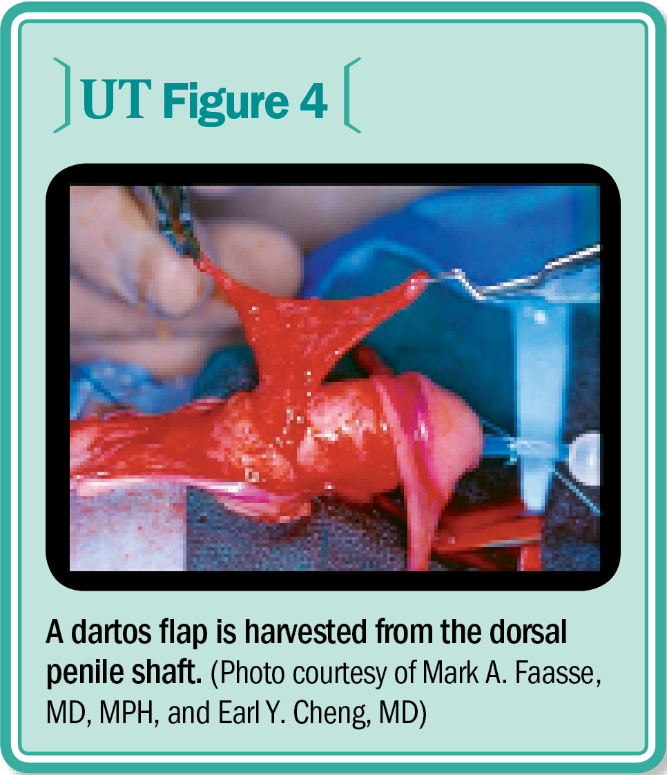 Tubularization of the neourethra can be performed around a 6-8F stent, using continuous or interrupted 6-0 or 7-0 absorbable sutures, such as polyglactin or polydioxanone. Subepithelial suture placement inverts the epithelial edges. Coverage of the urethroplasty is generally obtained by harvesting a dartos flap from the dorsal penile shaft