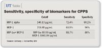 A study from Dr. Schaeffer's own lab identified two new biomarkers in expressed prostatic secretions that appear not only to have a high degree of sensitivity and specificity for CPPS, but may also shed light on the pathogenesis of the disease. The cytokine macrophage inflammatory protein-1alpha (MIP-1α) has a sensitivity of 72.4% and a specificity of 69.2%; monocyte chemoattractant protein-1 (MCP-1) has a sensitivity of 83.9% and a specificity of 90%. Combined, the two have a sensitivity of 88.7% and a sensitivity of 80%.