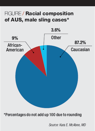 The authors found a difference in the racial makeup of the cases: Of the 247 inflatable penile prosthesis cases, 77.7% were Caucasian, 19.0% African-American, and 2.8% other. Among the 110 artificial urinary sphincter and male sling cases, 87.2% were Caucasian, 9% African-American, and 3.6% other.