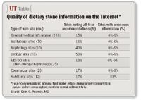 The Wake Forest study suggests that although there is a plethora of information on the Internet about diet and stone disease, at best only half of it is complete and accurate. The challenge for patients and physicians alike is determining which half.
