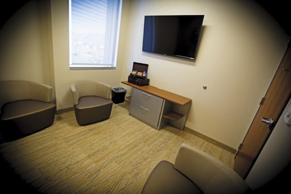 The University of Utah’s men’s health clinic center features flat-screen TVs in both the waiting room and procedure rooms. (Photo courtesy of University of Utah Health Care)