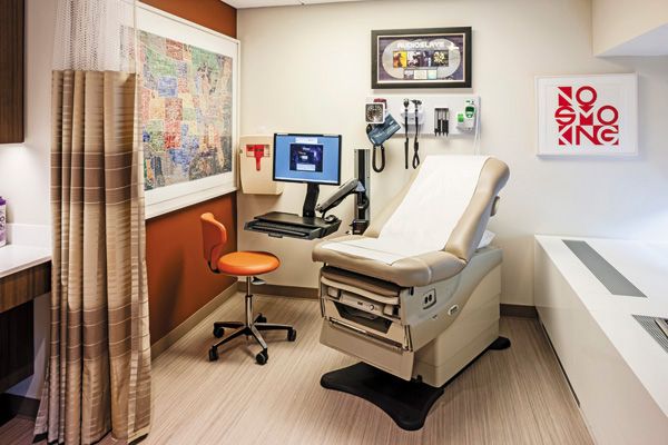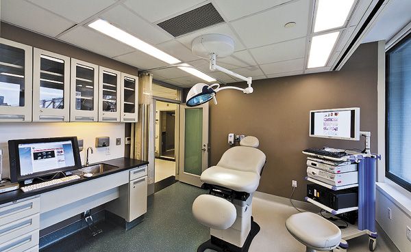 An exam room at the Iris Cantor Men’s Health Center at NewYork-Presbyterian/Weill Cornell offers a sleek, high-tech look. (Photo courtesy of Walter Dufresne/NewYork-Presbyterian Hospital)